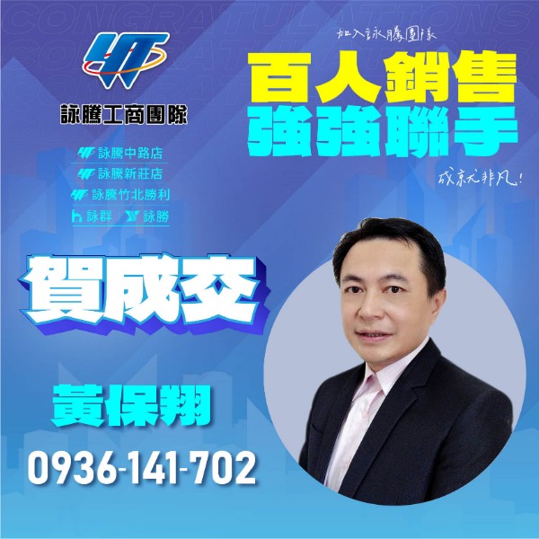 發佈: 1 天前 點閱: 17 【詠騰💥破億💥TOP團隊-👑詠騰工商地產👑】🏆狂賀詠騰團隊👍#2025年再度提前破億詠騰/詠群/詠騰新莊/詠勝/詠騰竹北👉持續成交不斷電 工業地產買賣租賃首選⚡️⚡️賀成交 工業區新穎千坪大廠房⚡️⚡️🏆🏆恭喜 保翔 琦萍 柏峰🏆🏆✨團隊就是我們每個人都是一滴小水滴✨但聚在一起就能匯集成浩瀚海洋👍 詠騰商仲團隊【大桃園/雙北/竹北,百人大團隊】💥 強強聯手,您房仲商仲首選!我們有商仲百人團隊系統和資源支持👊🏻這就是大家為什麼想加入我們的原因🌟 加入我們,成就非凡! 🌟#誠徵房仲菁英#誠徵工仲商仲菁英#20年以上仲介實戰經驗帶你飛#新北桃園工業地產首選#工業地廠房買賣租賃超強團隊想更上一層樓、卻舉足不前不想放棄房仲 卻又想學習商仲現在 #詠騰 是你最好的選擇我們擁有TOP的商仲團隊只要你願意 一起加入我們詠騰歷年獲獎無數2021 #冠軍 全國第二季2021 #亞軍 全國第三季2021 #亞軍 全國年度2021 #冠軍 全國年度2022 #冠軍 桃園區第一季2022 #冠軍 全國第二季2022 #冠軍 桃竹苗年度2022 #亞軍 全國年度2023 #冠軍 全國第一季2023 #亞軍 全國年度2023 #冠軍 桃竹苗年度2024 #季軍 全國年度2024 #冠軍 桃竹苗年度✨ 2025人才養成培訓計畫 ✨這裡有最全面的培訓和支持,讓你從零開始成為頂尖經紀人華麗轉身、晉升超業,不再只是夢想!🏆 2025等你來創造佳績!☕☕ 聊聊沒損失,合作大有可能 ☕☕⛳詠騰中路店🧑🤝🧑太平洋房屋桃園詠騰工商加盟店⛳桃園區正光二街139號👉詠騰不動產有限公司👉經紀人:(102)彰縣字第00365號🏹營運中、擴大徵才中☎️0989-747-500 (蔡經理)🆔LINE ID:0989747500✅詠騰官網:https://www.yuteng.com.tw/⛳詠騰中正店🧑🤝🧑太平洋房屋桃園詠群工商加盟店⛳桃園區中正路1391號👉詠群工商地產股份有限公司👉經紀人:(107)桃市字第001700號🏹營運中、擴大徵才中☎️0955-138-868(賴店長) 🆔LINE ID:0955138868✅詠群官網:https://www.yungchun.com.tw/⛳詠騰新北店⛳五股區五工三路79號👉詠騰新莊不動產有限公司👉經紀人:(98)桃市經字第001008號🏹營運中、擴大徵才中☎️0900-269-286(劉店長)🆔LINE ID:0900269286✅詠騰新北店官網:https://www.yungye.com.tw/⛳詠騰中正藝文店⛳桃園區南平路448號🏹擴大徵才中☎️0916-078-268 (楊副總)🆔LINE ID:0916078268✅詠勝官網:https://www.yungsheng.com.tw/⛳詠騰竹北勝利店⛳竹北市莊敬五街118號🏹擴大徵才中☎️0915-062-055 (吳店長)🆔LINE ID:0915062055✅詠騰竹北官網: [https://www.ytzv.com.tw](https://www.ytzv.com.tw)