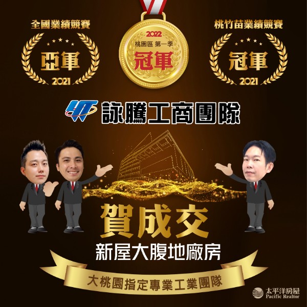 詠騰工商團隊-賀成交大園廠房 發佈: 2022/11/24 點閱: 396 🎖【詠騰工業不動產團隊】 #大桃園工業地廠房買賣租賃專家 #越努力越幸福恭喜優秀的同仁 #詠騰工業地廠房買賣租賃成交就是快 #再賀單日雙響泡 #賀成交大園廠房 #賀成交新屋廠房 📣恭喜姿而💯💯💯 📣恭喜青穎💯💯💯 📣恭喜鋌暢💯💯💯 📣恭喜語晴💯💯💯 📣恭喜心玲💯...
