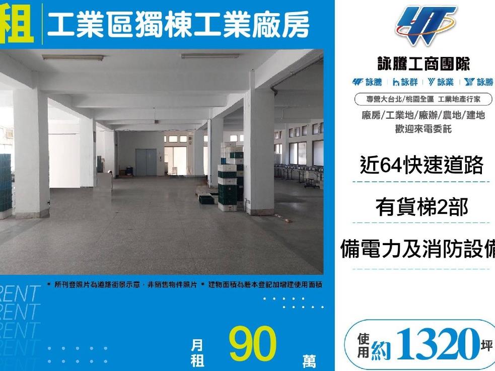 ※臨路約10米 ※挑高約5米 ※工業區內.近64快速道路.機場捷運站 ※備電力及消防設備 ※有貨梯2部 設施齊全好利用