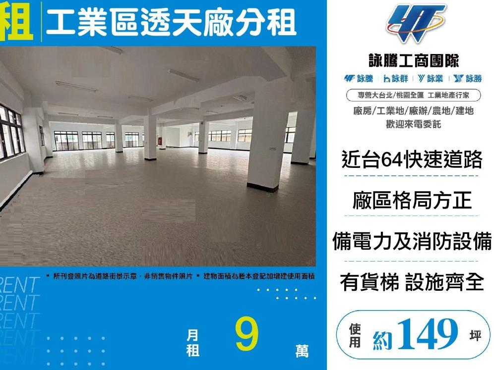 ※臨路約15米 ※挑高約3.6米 ※近64快速道路、國道1號 交通便捷 ※廠區格局方正 附車位 ※備電力及消防設備