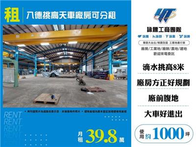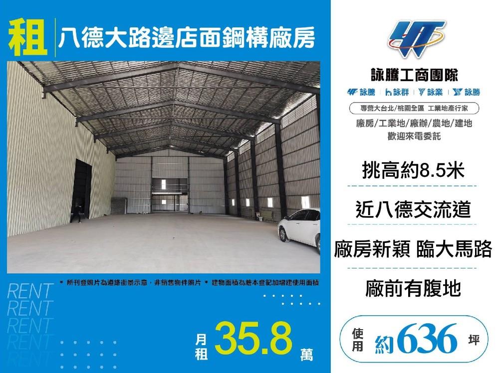 ※臨路約15米 ※近八德交流道及市區 周邊機能佳 交通便捷 ※滴水約8.5米鋼構廠房 廠房新穎 ※臨大馬路 標的顯著 廠前有腹地 各式車輛好通行 ※備電力及消防設備