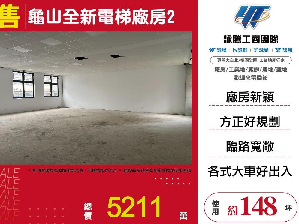 ※挑高約3.3米 ※臨路約11米 各式大車好出入 ※龜山林口交界處 四通八達 ※廠房新穎 方正好規劃 ※備電力及消防設備 ※電梯直達頂樓 空間好利用