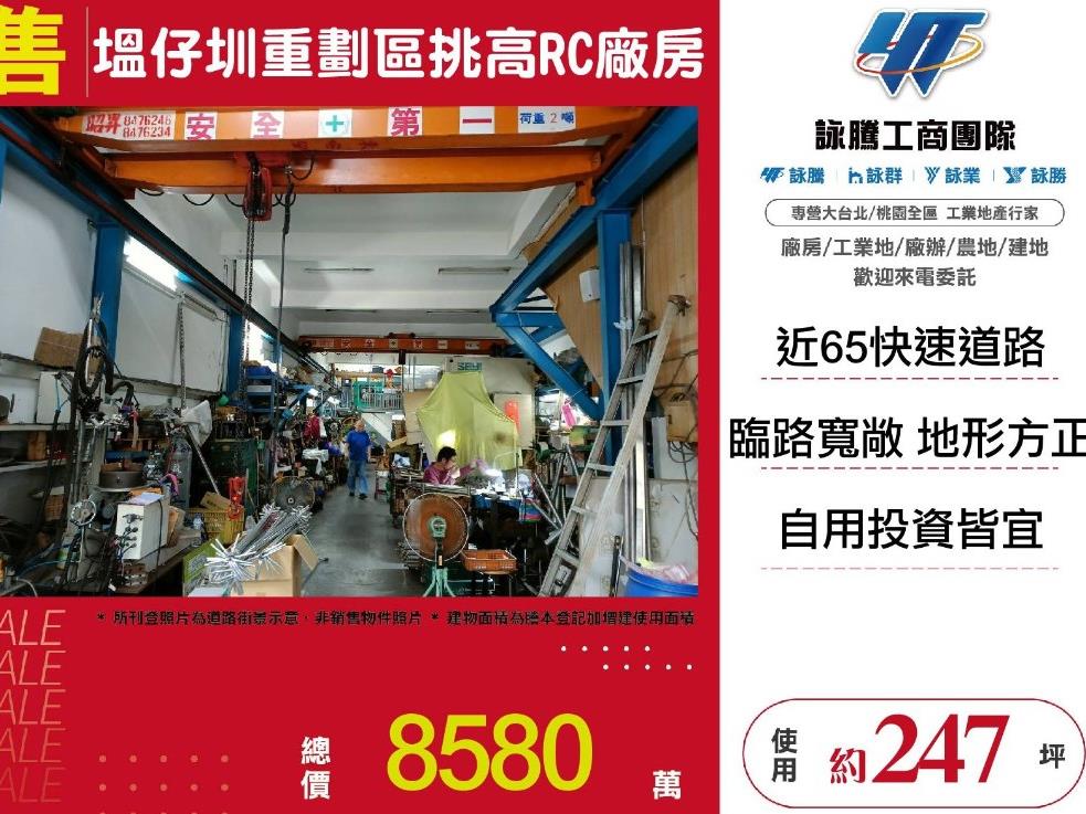 ※臨路約7米 ※挑高約4米 ※近65快速道路及輔大捷運站 交通便捷 ※塭仔圳重劃區範圍內(第二區) ※臨路寬敞 地形方正 自用投資皆宜 ※備電力設備 有貨梯及天車