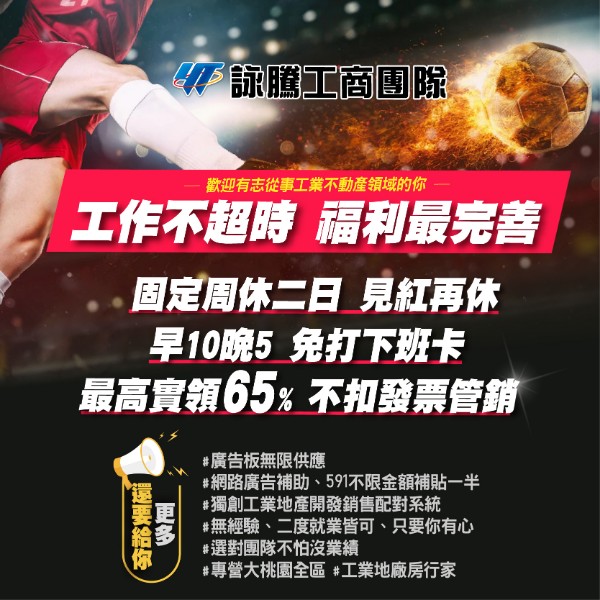 發佈: 2022/11/29 點閱: 375 賀成交中壢廠房🎖【詠騰工業不動產團隊】#大桃園工業地廠房買賣租賃專家#越努力越幸福恭喜優秀的同仁#詠騰工業地廠房買賣租賃成交就是快#狂賀單日三響泡#賀成交新屋大坪數廠房#賀成交南崁廠房#賀成交中壢廠房#恭喜最優秀最認真的同仁#選擇比努力更重要#選對團隊不怕沒業績#成交量及業績就是我們實力證明#無經驗專人一對一教學#千萬業績讓你輕鬆達陣📣恭喜姿而💯💯💯📣恭喜家豐💯💯💯📣恭喜語晴💯💯💯📣恭喜心玲💯💯💯📣恭喜岳儒💯💯💯📣恭喜昶東💯💯💯📣恭喜雅琴💯💯💯📣恭喜尉蓁💯💯💯📣恭喜承中💯💯💯➖➖➖➖➖➖➖➖➖➖➖➖➖💪🏻固定周休二日、見紅再休、家庭事業兩兼顧💪🏻上班時間早10晚5、免打下班卡💪🏻最高實領65%、不扣發票管銷 💪廣告板無限供應💪網路廣告補助(591不限金額、補貼一半)💪獨創工業地產開發銷售配對系統💪🏻歡迎有志從事工業不動產領域的你 💪🏻無經驗 二度就業皆可 只要你有心 =============================有心從事工業地產領域的菁英們,詠騰是你最佳的選擇 ☎️0989-747-500(蔡經理) LINE ID:0989747500 ☎️0989-747-500(蔡經理) LINE ID:0989747500 ☎️0989-747-500(蔡經理) LINE ID:0989747500 #詠騰不動產有限公司 #詠騰土地開發有限公司 #太平洋房屋桃園航空城捷運加盟店 #大桃園工業地廠房買賣租賃#專營大桃園工業地廠房買賣及出租✅詠騰官網:https://www.yuteng.com.tw/MyCard.aspx?f=921d1c✅詠騰FB粉絲團:https://www.facebook.com/www.yuteng.com.tw✅詠騰LINE ID:803033