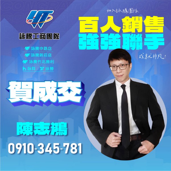 發佈: 2 小時前 點閱: 4 【詠騰💥破億💥TOP團隊-👑詠騰工商地產👑】🏆狂賀詠騰團隊👍#2025年再度提前破億詠騰/詠群/詠騰新莊/詠勝/詠騰竹北👉持續成交不斷電 工業地產買賣租賃首選⚡️⚡️賀成交 快速路旁方正乙工⚡️⚡️🏆🏆恭喜 阿儒 葉葉 志鴻🏆🏆✨團隊就是我們每個人都是一滴小水滴✨但聚在一起就能匯集成浩瀚海洋👍 詠騰商仲團隊【大桃園/雙北/竹北,百人大團隊】💥 強強聯手,您房仲商仲首選!我們有商仲百人團隊系統和資源支持👊🏻這就是大家為什麼想加入我們的原因🌟 加入我們,成就非凡! 🌟#誠徵房仲菁英#誠徵工仲商仲菁英#20年以上仲介實戰經驗帶你飛#新北桃園工業地產首選#工業地廠房買賣租賃超強團隊想更上一層樓、卻舉足不前不想放棄房仲 卻又想學習商仲現在 #詠騰 是你最好的選擇我們擁有TOP的商仲團隊只要你願意 一起加入我們詠騰歷年獲獎無數2021 #冠軍 全國第二季2021 #亞軍 全國第三季2021 #亞軍 全國年度2021 #冠軍 全國年度2022 #冠軍 桃園區第一季2022 #冠軍 全國第二季2022 #冠軍 桃竹苗年度2022 #亞軍 全國年度2023 #冠軍 全國第一季2023 #亞軍 全國年度2023 #冠軍 桃竹苗年度2024 #季軍 全國年度2024 #冠軍 桃竹苗年度✨ 2025人才養成培訓計畫 ✨這裡有最全面的培訓和支持,讓你從零開始成為頂尖經紀人華麗轉身、晉升超業,不再只是夢想!🏆 2025等你來創造佳績!☕☕ 聊聊沒損失,合作大有可能 ☕☕⛳詠騰中路店🧑🤝🧑太平洋房屋桃園詠騰工商加盟店⛳桃園區正光二街139號👉詠騰不動產有限公司👉經紀人:(102)彰縣字第00365號🏹營運中、擴大徵才中☎️0989-747-500 (蔡經理)🆔LINE ID:0989747500✅詠騰官網:https://www.yuteng.com.tw/⛳詠騰中正店🧑🤝🧑太平洋房屋桃園詠群工商加盟店⛳桃園區中正路1391號👉詠群工商地產股份有限公司👉經紀人:(107)桃市字第001700號🏹營運中、擴大徵才中☎️0955-138-868(賴店長) 🆔LINE ID:0955138868✅詠群官網:https://www.yungchun.com.tw/⛳詠騰新北店⛳五股區五工三路79號👉詠騰新莊不動產有限公司👉經紀人:(98)桃市經字第001008號🏹營運中、擴大徵才中☎️0900-269-286(劉店長)🆔LINE ID:0900269286✅詠騰新北店官網:https://www.yungye.com.tw/⛳詠騰中正藝文店⛳桃園區南平路448號🏹擴大徵才中☎️0916-078-268 (楊副總)🆔LINE ID:0916078268✅詠勝官網:https://www.yungsheng.com.tw/⛳詠騰竹北勝利店⛳竹北市莊敬五街118號🏹擴大徵才中☎️0915-062-055 (吳店長)🆔LINE ID:0915062055✅詠騰竹北官網: [https://www.ytzv.com.tw](https://www.ytzv.com.tw)